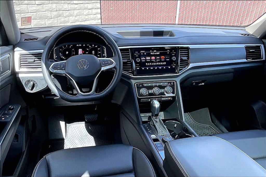 CERTIFIED - 2023 Volkswagen Atlas V6 SE 4Motion with 28,130 Miles for only $32,981. CLEAN CARFAX! Beuatifully equipped with CAPTAINS CHAIRS, PANORAMIC SUNROOF, BLACK WHEEL PACKAGE.