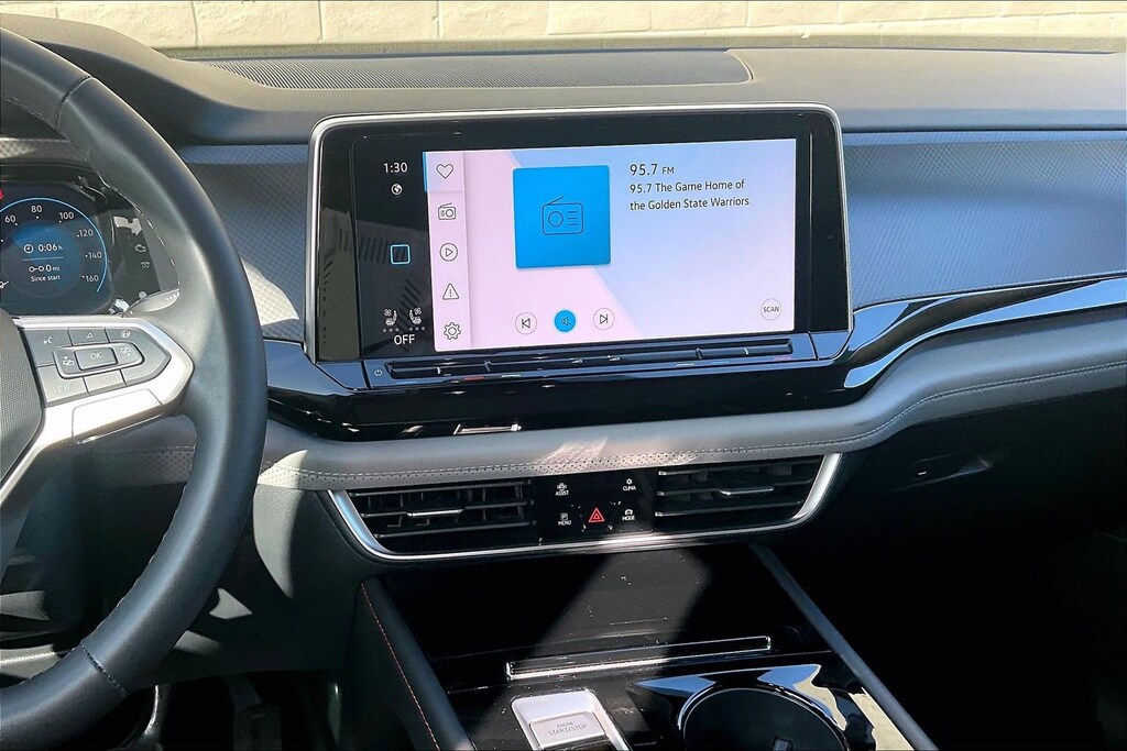 The Atlas has an infotainment system that is easy to use and intuitive, and it allows for swiping and pinch zooming. Apple Car Play is awesome! Surprisingly, some manufacturers have not integrated this feature at this time. The digital instrument panel has a very nice, modern look, and it offers 5 or 6 different views. One of the really cool things about the Atlas- you can display the nav map in the middle of the instrument panel. Additionally, you can make the map bigger and the gauges smaller, which allows you to see more map detail- a really nice option. The car even has an altimeter, which is really cool to me (I’m a pilot by trade). Not so much for my wife…