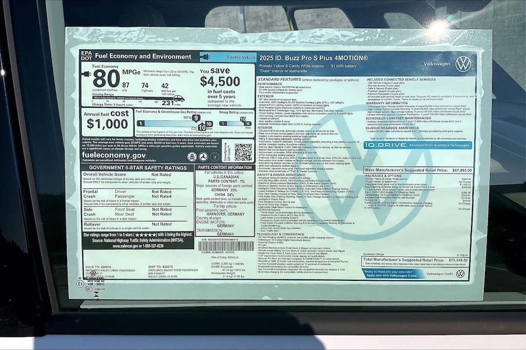 Pro S Plus 4Motion ID.Buzz Volkswagen 0 Miles 2025 $73,318 1-Speed Direct-Drive Automatic