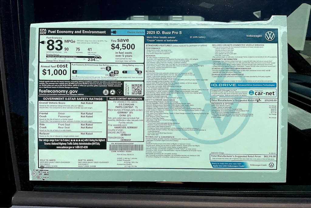 Pro S ID.Buzz Volkswagen 0 Miles 2025 $62,316 1-Speed Direct-Drive Automatic