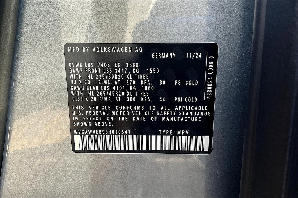 - Front tires: 235/50TR20.0