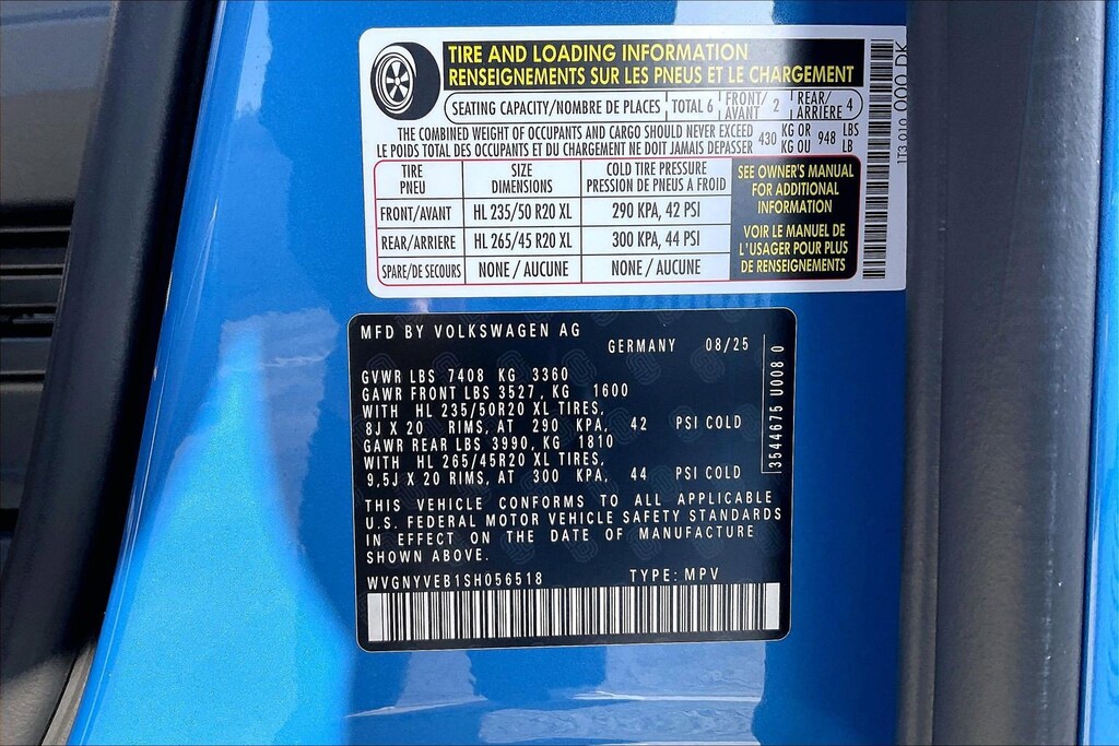 - Front tires: 235/50TR20.0
