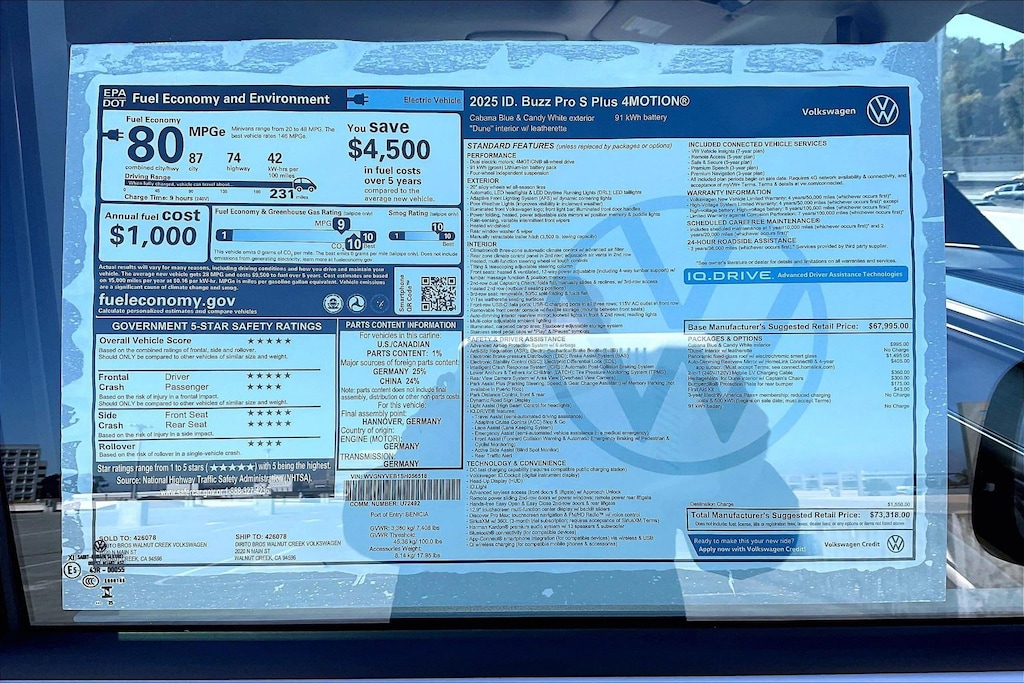 Pro S Plus 4Motion ID.Buzz Volkswagen 0 Miles 2025 $73,318 1-Speed Direct-Drive Automatic