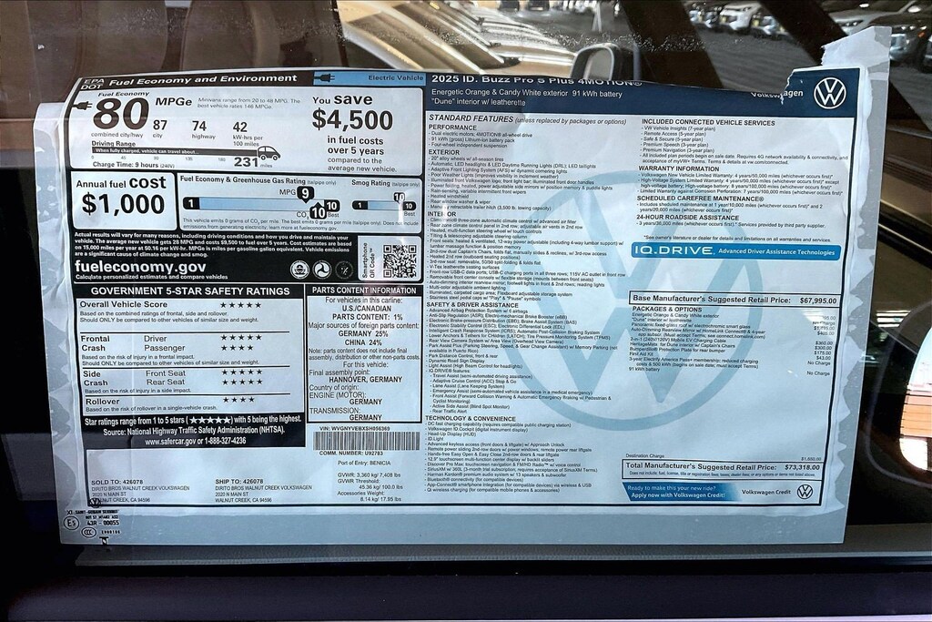 Pro S Plus 4Motion ID.Buzz Volkswagen 0 Miles 2025 $73,318 1-Speed Direct-Drive Automatic