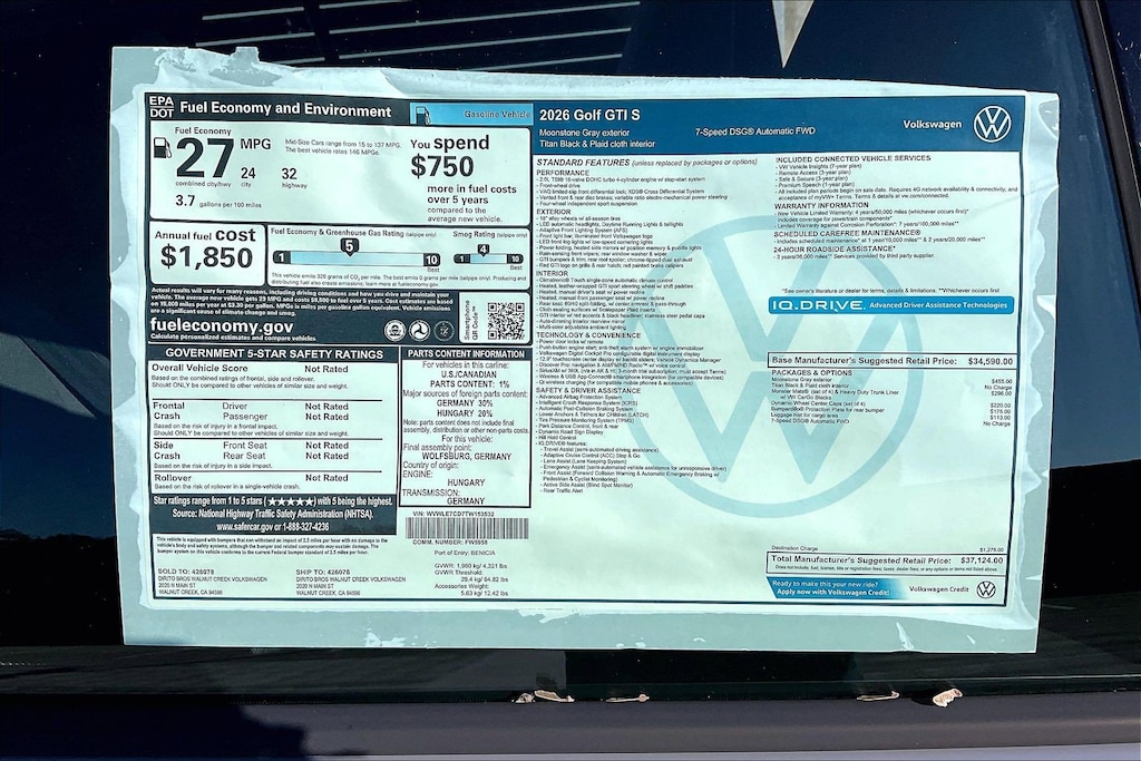 S Golf GTI Volkswagen 0 Miles 2026 $37,124 7-Speed Double Clutch
