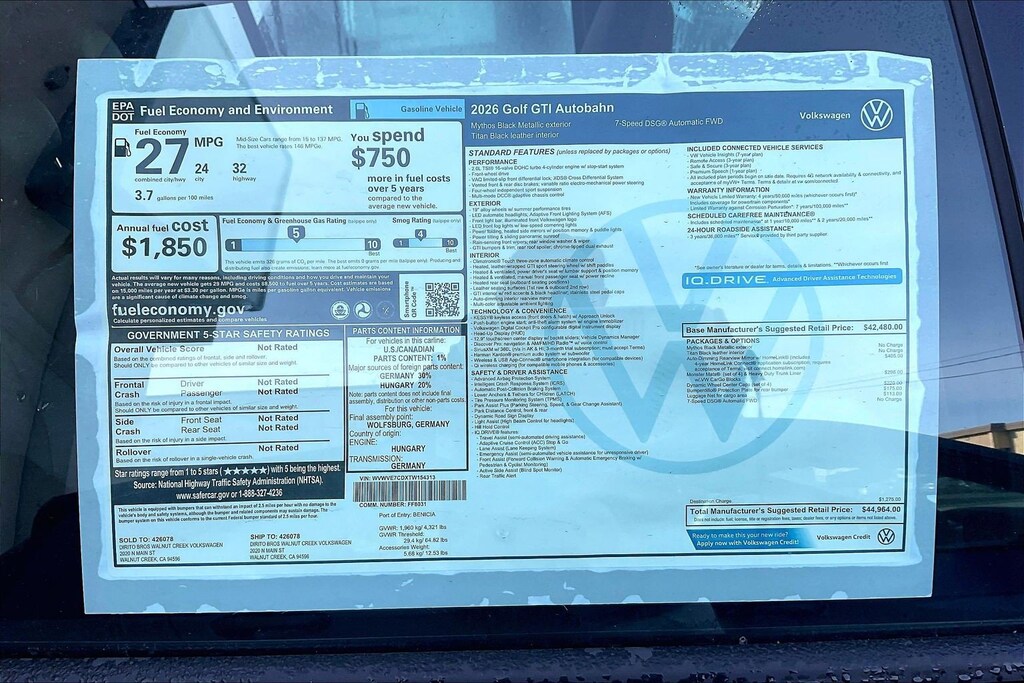 Autobahn Golf GTI Volkswagen 0 Miles 2026 $44,964 7-Speed Double Clutch