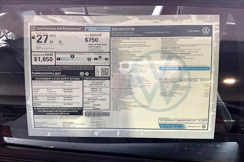 SE Golf GTI Volkswagen 0 Miles 2026 $41,564 7-Speed Double Clutch
