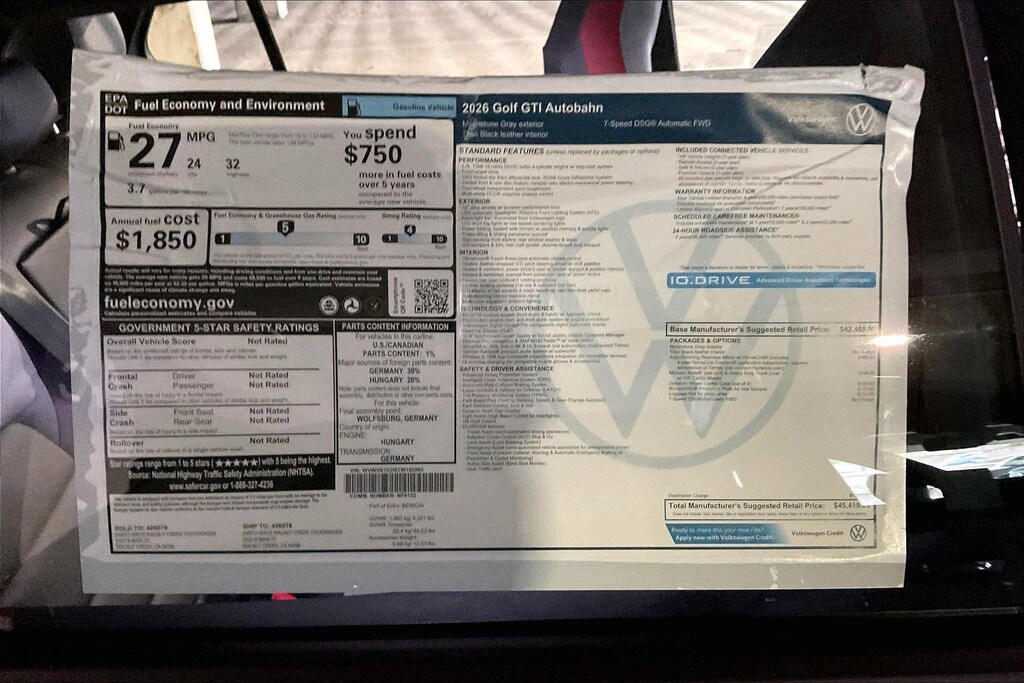 Autobahn Golf GTI Volkswagen 0 Miles 2026 $45,419 7-Speed Double Clutch