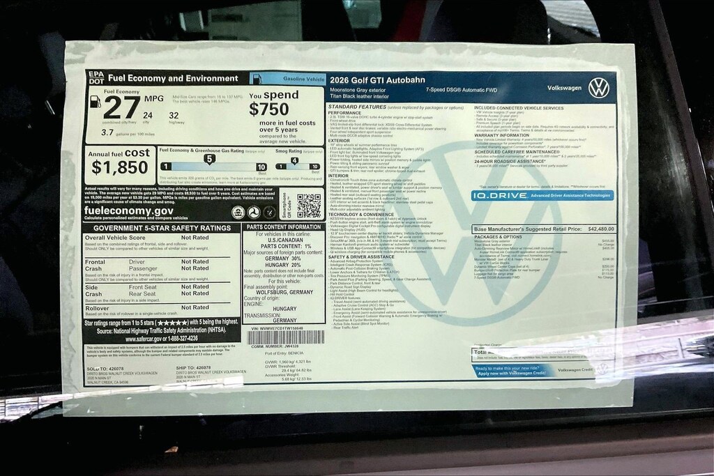 Autobahn Golf GTI Volkswagen 0 Miles 2026 $45,419 7-Speed Double Clutch