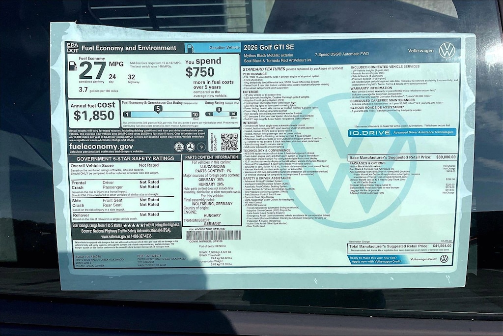 SE Golf GTI Volkswagen 0 Miles 2026 $41,564 7-Speed Double Clutch