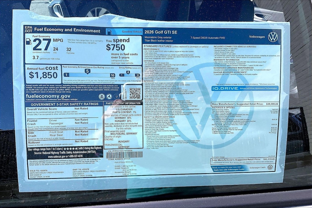 SE Golf GTI Volkswagen 0 Miles 2026 $43,319 7-Speed Double Clutch