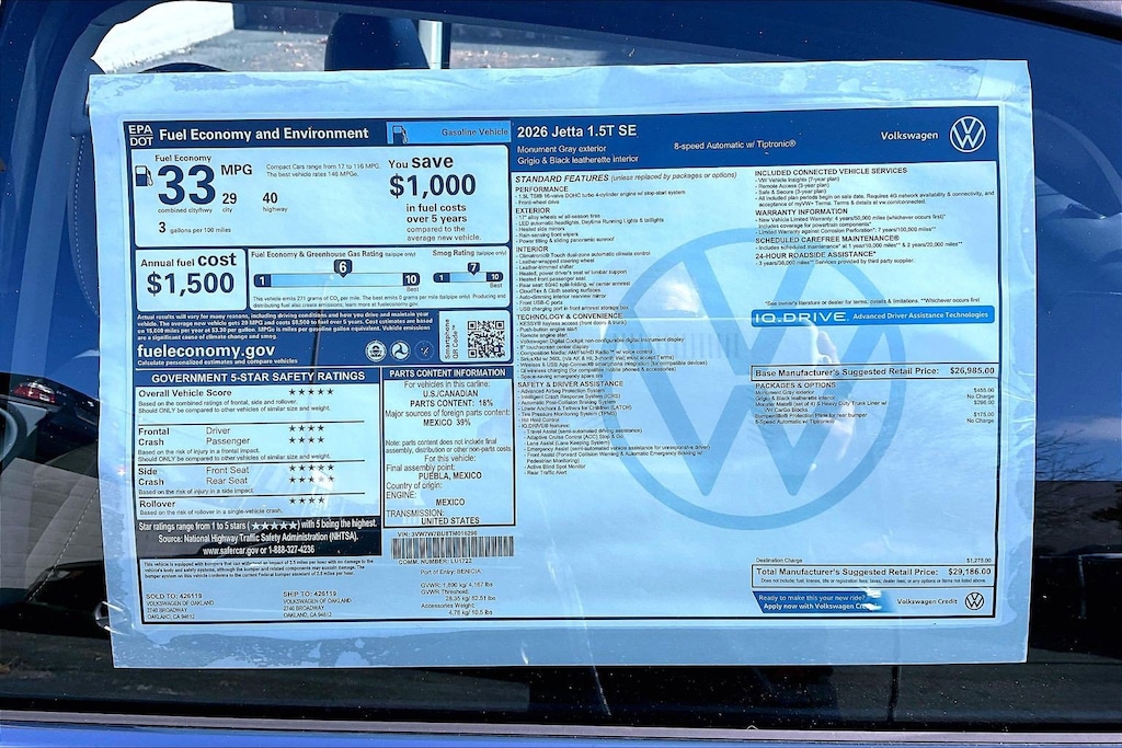 SE Jetta Volkswagen 0 Miles 2026 $29,186 8-Speed Automatic with Tiptronic