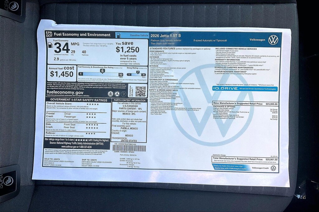 S Jetta Volkswagen 0 Miles 2026 $25,961 8-Speed Automatic with Tiptronic