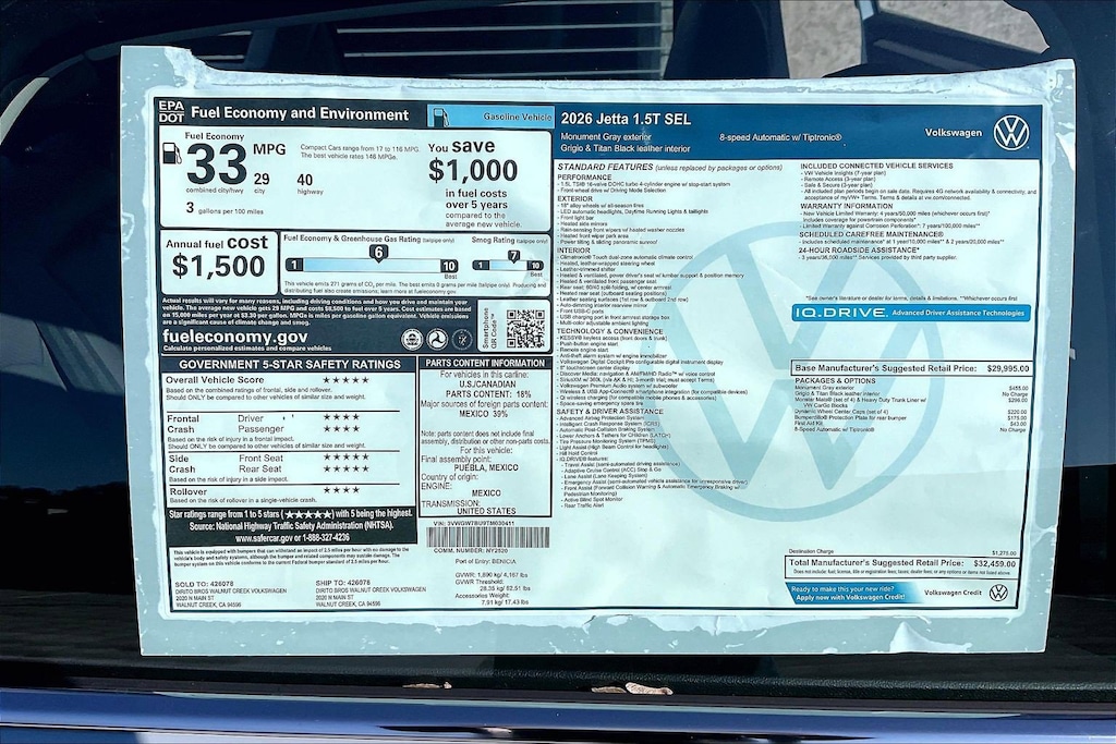 SEL Jetta Volkswagen 0 Miles 2026 $32,459 8-Speed Automatic with Tiptronic
