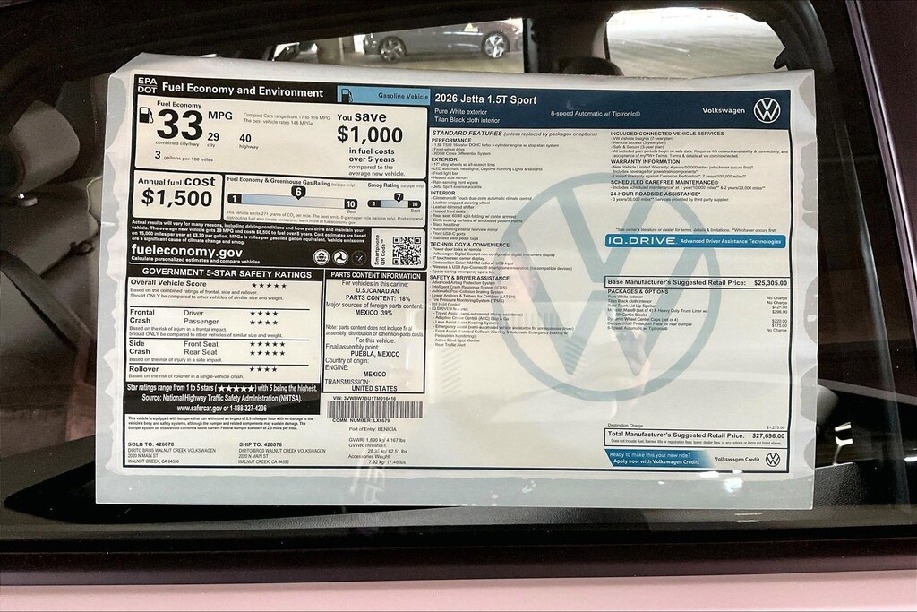 Sport Jetta Volkswagen 0 Miles 2026 $27,696 8-Speed Automatic with Tiptronic