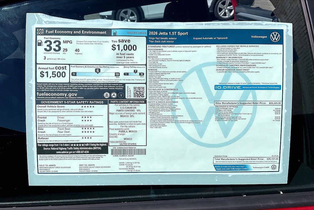 Sport Jetta Volkswagen 0 Miles 2026 $28,151 8-Speed Automatic with Tiptronic