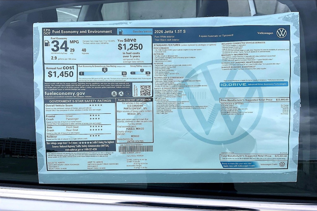 S Jetta Volkswagen 0 Miles 2026 $25,855 8-Speed Automatic with Tiptronic