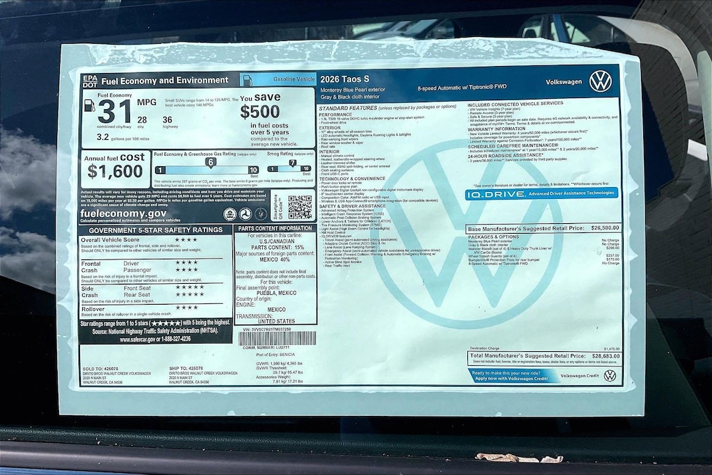 S Taos Volkswagen 0 Miles 2026 $28,683 8-Speed Shiftable Automatic