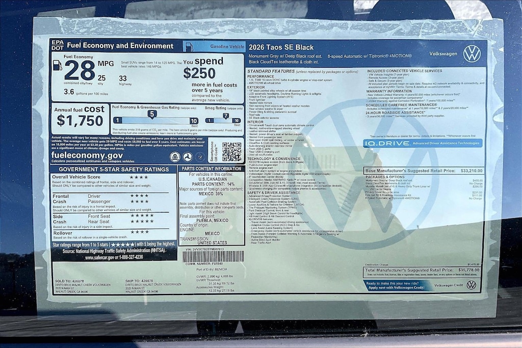 SE Black 4Motion Taos Volkswagen 0 Miles 2026 $35,778 8-Speed Shiftable Automatic