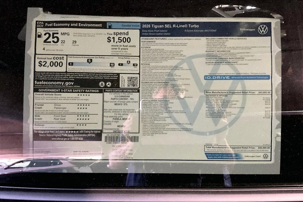 SEL R-Line Turbo 4Motion Tiguan Volkswagen 0 Miles 2026 $46,980 8-Speed Shiftable Automatic