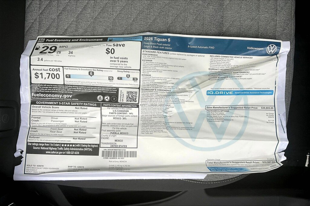 S Tiguan Volkswagen 0 Miles 2026 $32,687 8-Speed Shiftable Automatic