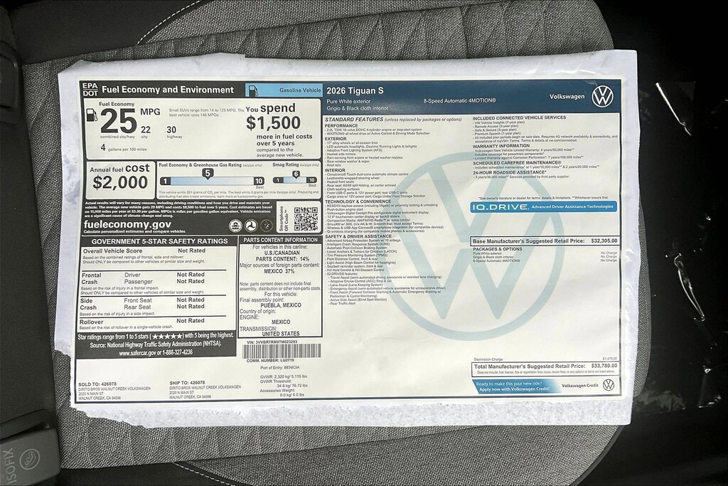 S 4Motion Tiguan Volkswagen 0 Miles 2026 $33,780 8-Speed Shiftable Automatic