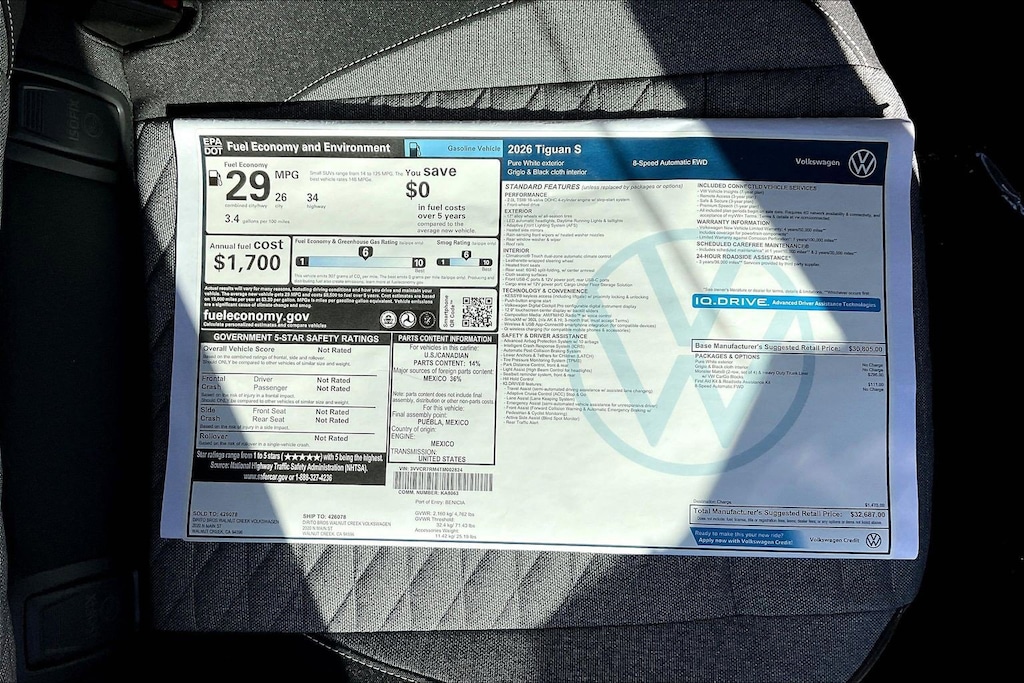 S Tiguan Volkswagen 0 Miles 2026 $32,687 8-Speed Shiftable Automatic