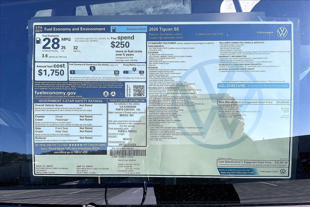 SE Tiguan Volkswagen 0 Miles 2026 $35,487 8-Speed Shiftable Automatic