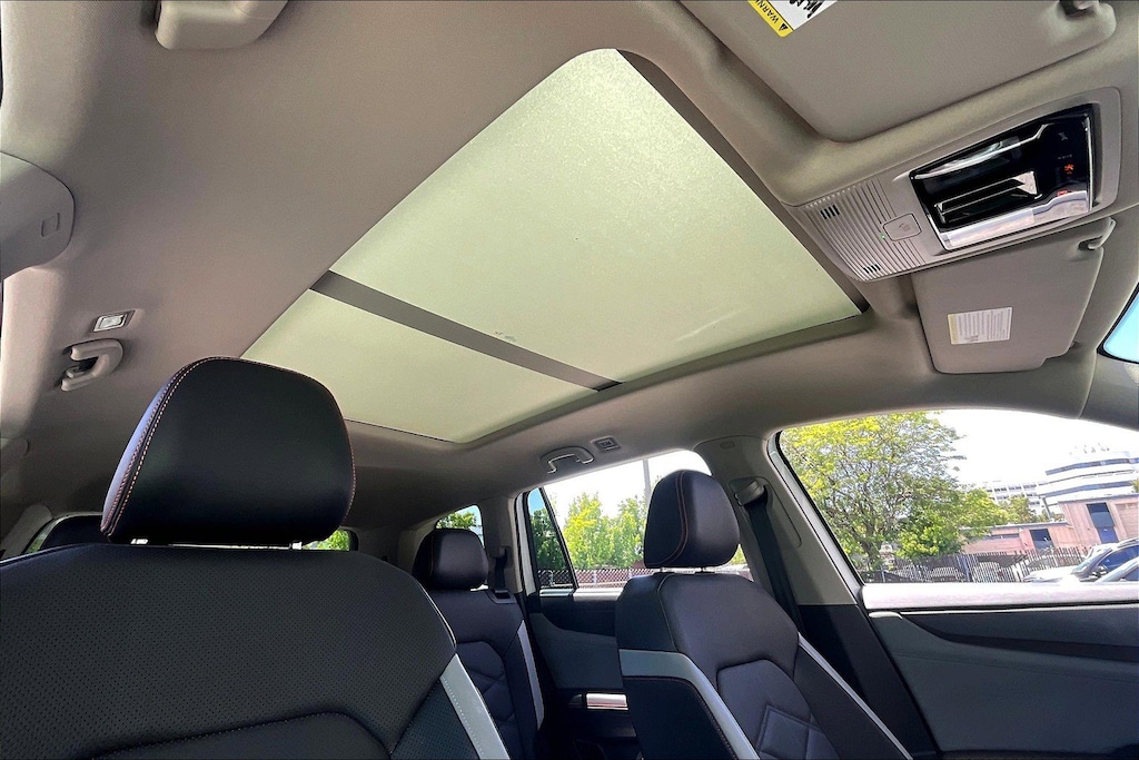 Our Atlas is equipped with a panoramic sunroof, which is pretty cool. It also has a power sunshade for the sunroof. The Chevy and GMC have a very cheap, manual cover. It is spring-loaded, and if you accidentally let go of it, it will snap back like a window shade. At this price level, it should be a power sunshade. While we are on the topic of sunshades: the 2nd row windows in the Atlas have built-in sunshades, which is ingenious! I wish all cars had this feature.