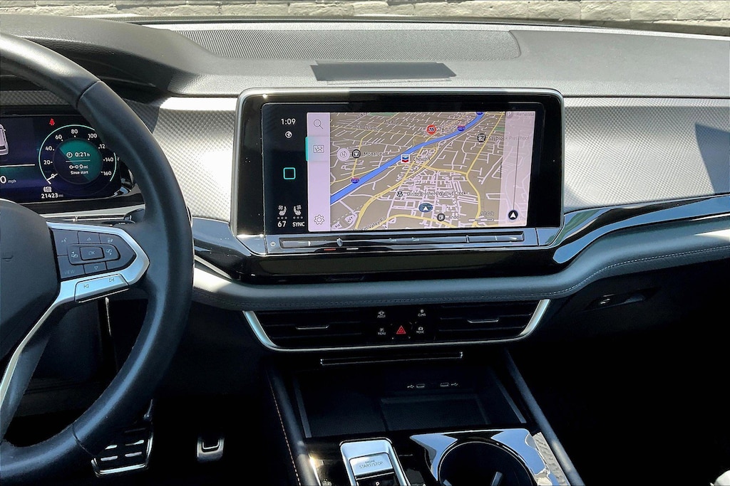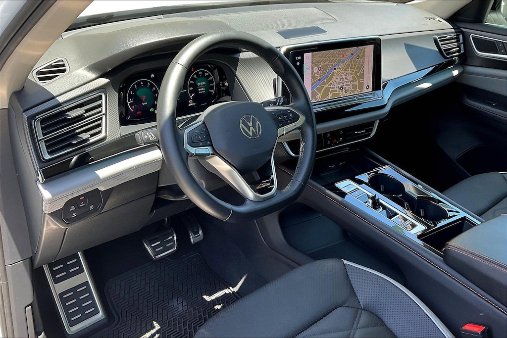 The Atlas has an infotainment system that is easy to use and intuitive, and it allows for swiping and pinch zooming. Apple Car Play is awesome! Surprisingly, some manufacturers have not integrated this feature at this time. The digital instrument panel has a very nice, modern look, and it offers 5 or 6 different views. One of the really cool things about the Atlas- you can display the nav map in the middle of the instrument panel. Additionally, you can make the map bigger and the gauges smaller, which allows you to see more map detail- a really nice option. The car even has an altimeter, which is really cool to me (I’m a pilot by trade). Not so much for my wife…